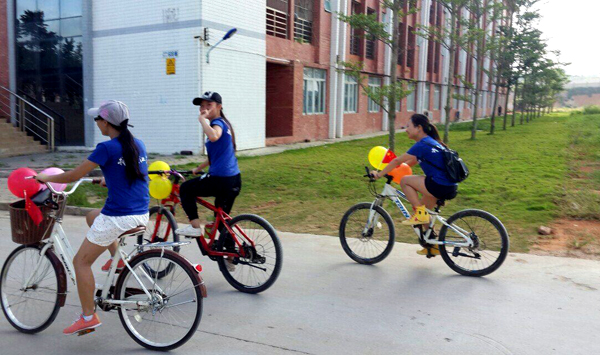 晓景丽未热,晨飚鲜且凉。7月14日清晨,日光熹微,天边泛起层叠的红霞,校园内一片寂静,不见熙攘,意次元实践队则热情高昂,一行人浩浩荡荡地骑着自行车往瑞云湖出发,为宣扬即将到来的省运会所传达的运动精神。