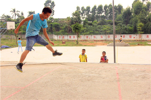 不过,既然有机会玩,那便要玩得痛快,哪怕知道会出一身大汗,或者是第二天手臂肌肉会酸痛,那又怎样?能与孩子们在一块玩,感受那种四处洋溢的童真是一件美妙的事情。看到在场上活蹦乱跳的他们,想到了以前那个光着脚丫跑来跑去但又不会累的我,因为充满活力的孩子永远不会喊累。但是现在的我却是英勇不复当年,累了之后便在旁边的石坎上坐下来,一边看一边回忆,看到几个漂亮的闪躲后本能地说出“漂亮”二字。