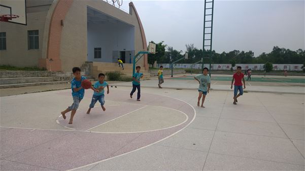 第三节课是体育课,孩子们走出课堂来到篮球场上,他们都开心地奔跑、跳跃,挥洒着汗水,整个球场都回荡着他们欢乐的笑声。