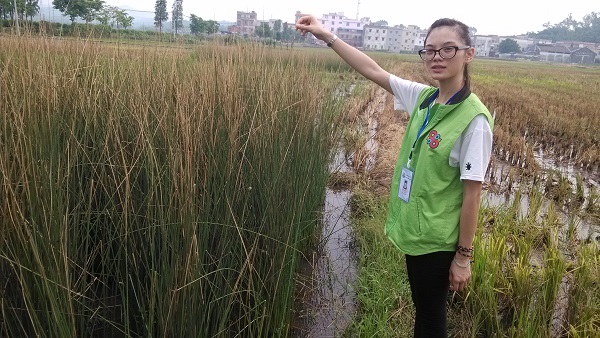 随后,“曦望”调研组组员在老人家的指引下,来到了附近种植蒲草的农田。虽然他们远远地就发现了蒲草丛,然而,这些蒲草看上去却不容乐观。据了解,由于水源受污染情况较为普遍,蒲草的种植质量因此受到影响。