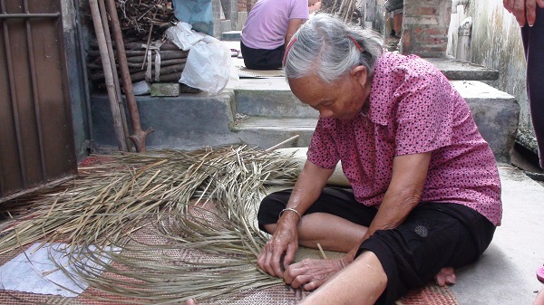 老人家年纪虽大,可是编织草席的手艺却是非常娴熟