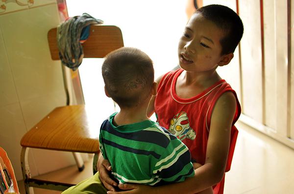 他是如此艰苦。憨憨的笑容刻画出他的纯真,他用朴实平凡的语言向我们说出了最美丽的故事。今年十岁的他已经肩负起了家里的重担,“昼出耘田夜绩麻,村庄儿女各当家。童孙未解供耕织,也傍桑阴学种瓜。”这是对他最好的描述。“我上课就背着弟弟来听课,放学回家就做饭,晚上帮弟弟洗澡洗衣服。”他似乎在描述一件再平常不过的事情,可是对于一个十岁的孩子来说,就等于城市里的孩子在好好享受着金色童年的时候,他已然家里的顶梁柱。父母出门打工,祖父母外出务农耕作,还不及灶头高的他已早早拿起锅铲,娴熟地料理着家里的大小事务。