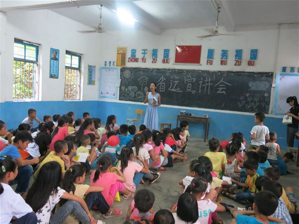 经过支教老师的介绍,学生们对湛江省运会的了解更近一步。接着,支教老师为考考学生们对于省运会知识的了解程度,所以设计了一个环节叫“知识抢答”,回答正确的学生便可得一份精美小礼物。