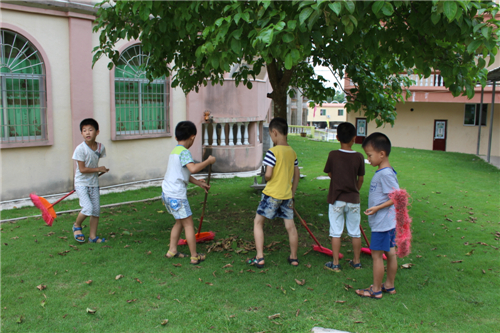 中午时的一场大雨让天气凉爽了许多,阴天亦同学们免受太阳的暴晒,真可谓“天公作美”。队长根据学生的情况将校园分为五个区域,每个班负责打扫一个地方,同学们在老师的带领下,拿起劳动工具,兴高采烈地走到自己的清洁区域,自觉地扫起地来。草坪上、操场上、校道上……随处可见学生认真劳动的身影,有的捡矿泉水瓶,有的扫落叶,有的洗厕所、有的倒垃圾……乖巧有序地进行自己的工作,贴心的孩子们还时不时对老师说:“老师,我来帮你吧”。老师们则将孩子们打扫不到的“死角”、“盲区”都彻底地清理干净,发挥榜样的示范力量。