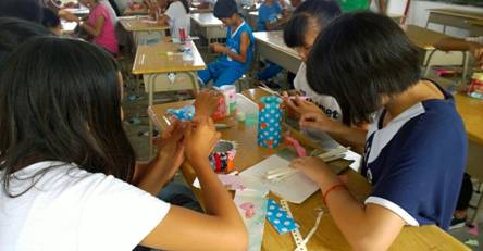 同学们在这场比赛中可谓是才艺尽展。他们的想象力非常丰富,且用料多样,制作方法也各具特色。他们有的利用塑料瓶制作多彩的小篮子;有的利用彩纸折成各种各样的小动物、小花朵.....他们那让人惊叹的想象力,正是他们天真烂漫的见证。在场上,看到他们认真制作时的神情,我们每一位教员都深感欣慰。