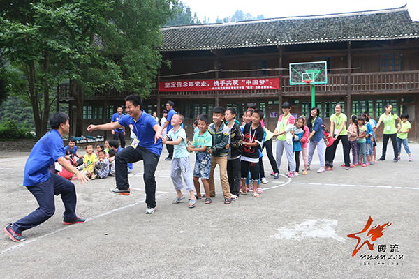 7月19日上午,全体“暖流”队员与硐里小学50多名留守儿童在硐里小学举行见面会,正式拉开了“暖流”志愿者服务队开展关爱留守儿童的序幕。