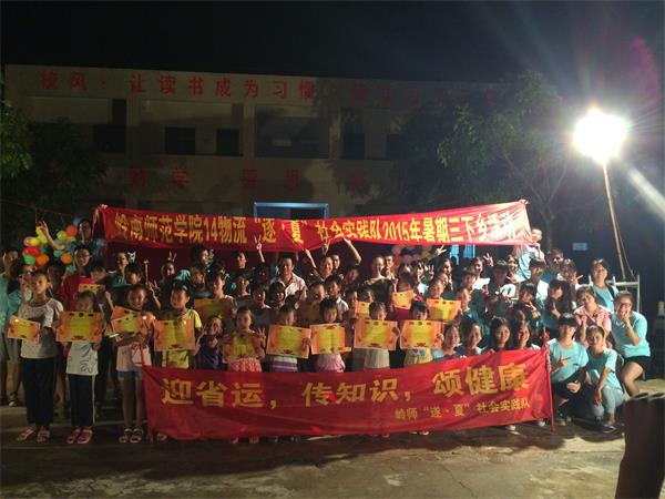 晚上10时许,文艺晚会最终在雷鸣的掌声中结束了,中间虽一波三折,大家却总是盛兴而归的。或许,这也意味着“遂夏”队三下乡离别前的最后留恋,然,他们用他们的行动诠释了什么叫做“不放弃”,“不后悔”,如同他们三下乡前制定的口号——“青春飞扬,斗志昂然;七月下乡,放飞梦想”。