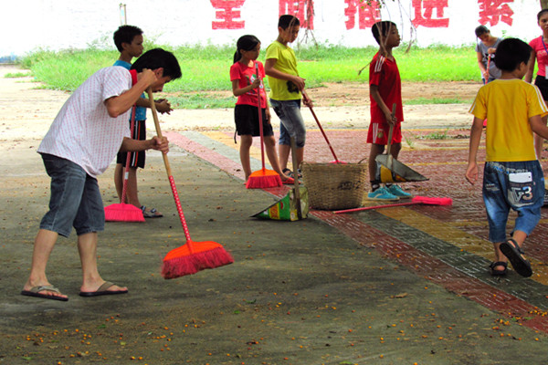 在同学们分工合作下,一会儿功夫校园就改变了模样,浑浊的沙土和枯黄的落叶不复存在,雨后特有的清新空气扑面而来。此次大扫除活动不仅培养了队员以及学生之间的感情,还提高了学生的卫生意识,并以此为契机,与实践队初到时的“环境保护”宣传理念相呼应,将开启杨柑镇环境卫生大清洁的新篇章。