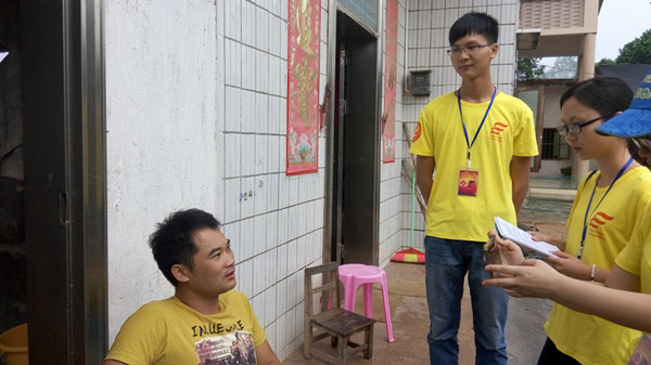 天空下着微微小雨,宣传组组员走过泥泞的小道,来到了村民们的家里,他们向村民们发放拒绝“校园暴力”宣传小手册。一道道黄色艳丽的风景吸引了村民们的注意力,他们纷纷对穿着黄色队服前来进行宣传拒绝“校园暴力”的队员们表示热情,以好奇的眼光打量着组员们。