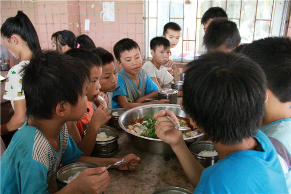 这天,筑梦队与学生一起在没电的日子煎熬,同时,去市场买自己喜欢的菜,做自己喜欢的菜,和学生们一起共享”大餐“!在筑梦队和学生一起在厨房努力,一份“饕餮盛宴”问世:头菜上的是水煮鱼,红彤彤的颜色一看就让人胃口大开;接着是韭黄炒蛋,吃了前面的水煮鱼太重口,那正好拿这道小清新的菜来中和中和。菜还在呈上中,这是青椒炒鸡杂,下面的还有菜肴来袭:番茄炒蛋、菌类炒肉……末了吃完还有浓郁的玉米胡萝卜汤,当真吃得肚皮滚滚,笑容满满。