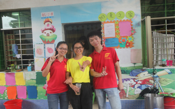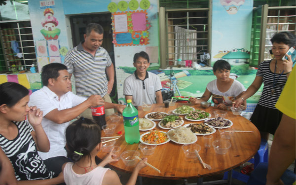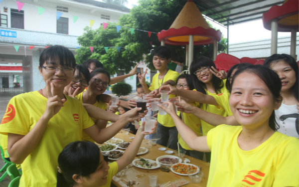 在欢送会宴席上,队长陈小霞代表红土情缘实践队对海棠小学的所有领导老师的帮助和支持表示深深的感谢,同时,她也对看望队伍的老队员表示热烈的欢迎。随后,三个将要离开的队员发表讲话,她们一致表示,非常舍不得朝夕相处了十天的队员们,但为了湛江省运会的正常运作,她们都甘愿牺牲自己的时间,认真为省运会服务。最后,海棠小学校长举杯敬全场,表示了对红土情缘实践队的祝愿和期待。