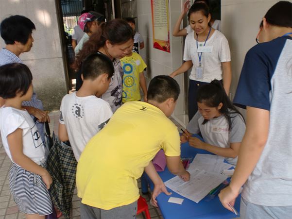 活动开始前,为了避免两个年级参与出现的混乱情况,每次开展活动的都是其中一个班先开始进行社工小组活动,期间另一个班在课室里有师范队员安排课业辅导,并在活动室门前设置签到处,贴上姓名帖。