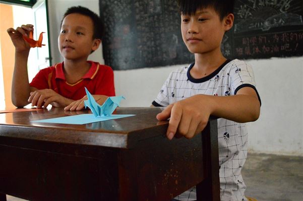 一张纸,一个小脑袋,还有一双灵巧的小手。现在赋予他们动手的能力,让他们发挥自己的想象力,尽情地把纸折成生活常见的东西。看着小学生笨拙的手法,很难相信纸张最终演变成精巧的千纸鹤,红心,百合。在这时候,他们笑容是最灿烂的。