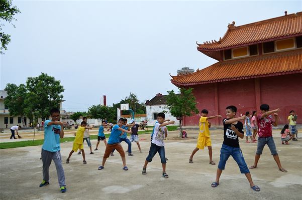 保家卫国是每个男儿的梦。所以支教组开展一个强身健体的体育活动——打军体拳。伴随着一声“准备格斗”,小学生就马上做好格斗姿势。在平时他们都是老师们眼里调皮的学生,现在他们更像合格的战士。他们有火一般心,充满热情,随时准备为国家战斗。