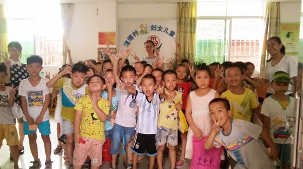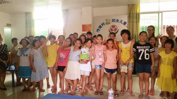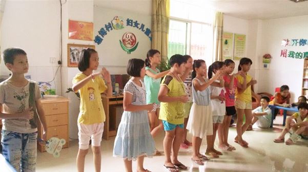 女生们展示刚刚学到的手语
