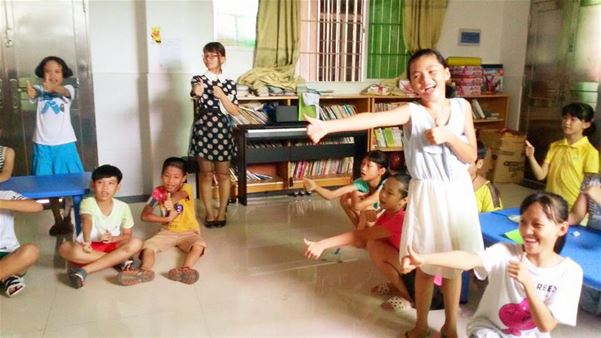 下一个环节是教授孩子们一些简单的手语,如你好,早上好等问候语。孩子们跟着哥哥姐姐有模有样地学了起来,脸上洋溢着快乐的笑容。