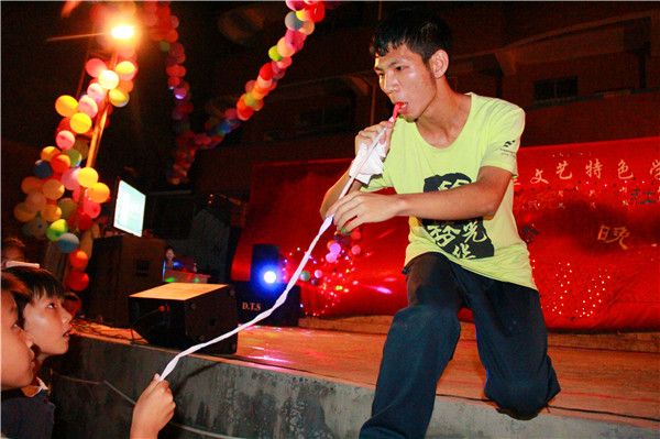 晚会以一场充满活力兼浩然正气的跆拳道表演开始,寓意学生的青春活力以及少年之正直阳刚。紧接着,又以激情四射的街舞表演引发晚会的高潮,现场观众莫不惊叹。然而,高潮过后并未衰退,而是持续上升,爆笑的小品表演、筑梦实践队队长一首《同舟之情》和手语表演《明天,你好》引来现场喝彩声。接着,岭南师范学院魔术协会的会长小试身手,引爆全场!现场气氛达到最高潮,现场秩序差点失控,对魔术着迷的小学生们无不想更接近地观看魔术,各位村民也都聚精会神地看。喝彩声不断、惊叹声无穷!