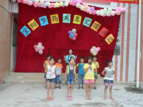 经历队员以及同学们的一番精心准备和安排。7月20日下午,岭南师范学院“宣翔梦扬”社会实践队在江车小学成功举办“成果汇报”晚会,本次晚会得到当地村委以及村民的大力支持。出席本次晚会的有江仔村村委书记杨权、村委主任杨元、江车小学校长叶瑞文、实践队队长杨广武以及当地村民。