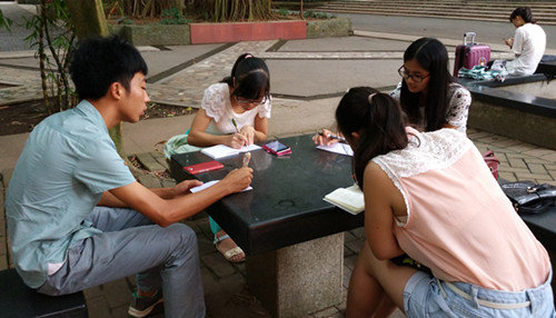 在“三下乡”每个队伍里都有一群白天活跃在各种活动中,夜深人静时挑灯夜战、奋笔疾书的队员,他们便是新闻组成员。当然,岭南师范学院“蓝海鸥”社会实践队也少不了这样的工作者。