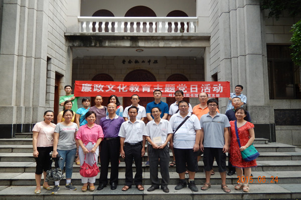 6月24日,为了响应湛江市和广东省高校廉政文化建设的号召,继去年组织参观岭南三大清官之一……陈瑸历史文化纪念馆之后,图书馆今年又组织了信息部党支部、特藏部党支部、技术部党支部和办公室党支部前往高州市三个爱国廉政教育基地参观学习(“三讲”教育基地……高州市孙中山纪念堂、国家爱国主义教育基地……冼太庙和广东廉洁乡村……彭村),联合开展廉政文化教育主题党日活动。通过参观学习,使广大党员干部看到廉政文化在实现生活中影响力,认识到“廉政文化进校园”的重要性,体会到树立廉政文化价值观的重要意义。