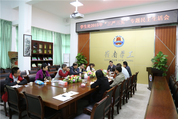 12月30日下午,学生处党员领导班子2015年 “三严三实”专题民主生活会在紫荆楼301召开。学校党委彭权群副书记和学生处全体党员参加了本次会议。