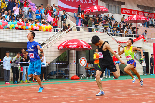 短短的几十秒,从起点都终点,每个学院的大本营的拉拉队都在歇斯底里的呐喊助威,每个运动员也是尽力地奔跑着。过后,当问及参加接力赛的一个选手时,他表示,接力赛靠的就是团结跟速度。团结,是每个团队所应具有的精神;速度则在在比赛中所需要的能力,有速度才有超越。