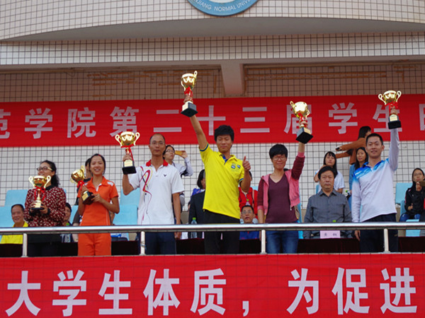 11月15日下午,学校第二十三届学生田径运动会顺利闭幕,数计学院以团体总分192分的优异成绩一举夺得普通组团体总分第一名,继2012年、2013年后,第三次蝉联普通组团体总冠军。