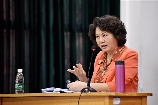 刘福瑞书记在讲座开始前作了讲话,对段岭教授的到来表示了欢迎,并对段教授进行简单的介绍。段教授的讲座围绕着声乐教师系统教学的程序和我们为谁而歌唱展开。她强调应该重视系统的训练方法,学习外国科学的发声方法,但要注意将其与民族传统的唱法结合起来。段教授深入地分析了以下几点:一、了解歌曲的背景与风格;二、唱歌要有层次,动词和形容词要夸张的去做;三、情、声、气要更好地结合等。总而言之,就是科学的方法与大众审美结合在一起,用中国人的语言歌唱做到字正腔圆。她还指出舞台演唱的标准,就是美化、夸张、展示,从生活点点滴滴中寻得,做到声情并茂。讲座中段教授还进行了模拟教学,她根据学生演唱的具体问题给出了专业的指导,同时指出老师要善于挖掘学生的闪光点,多看多听才能开阔自己的眼界。最后,该院教师还与段教授进行了交流。