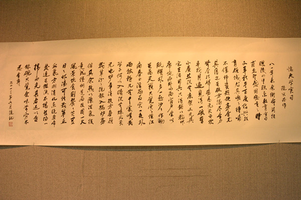 母校建立师范教育110周年来临之际,美术学院美术学(书法方向)毕业学子写成一幅幅书法艺术作品来承载对母校的热爱与期盼。艺术与文化的发展是统一的,艺术是文化的重要内涵与组成部分,而文化是艺术的渊源与内容,艺术的深度体现着文化的厚度。美术学院举办美术学(书法方向)办学十周年毕业生作品邀请展,不仅是对书法方向专业是总结与纪念,更是对艺术的反思与文化的传承。羊城晚报的记者黄礼琪带其助手张凤霞、陈丽萍也来感受我们的书法艺术,翰墨文化。