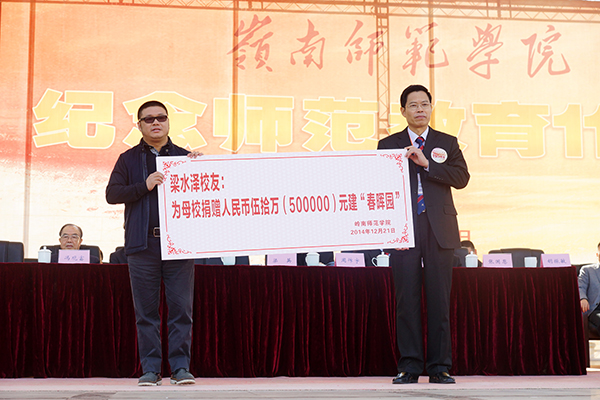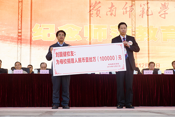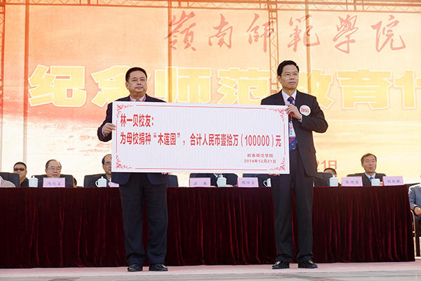 岭师新闻中心讯:在12月21日纪念师范教育110周年大会上,由梁英书记主持,罗海鸥院长接受捐赠,我校接受了海峡两岸兄弟院校赠送的纪念品,更出彩的是接受了广州校友分会、东莞校友分会,以及14位校友的捐赠,这是我校接受捐赠最多的一次盛会。