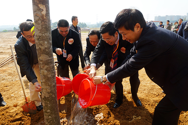 与会领导嘉宾校友在“师范教育110周年纪念林”(莞香林)植树