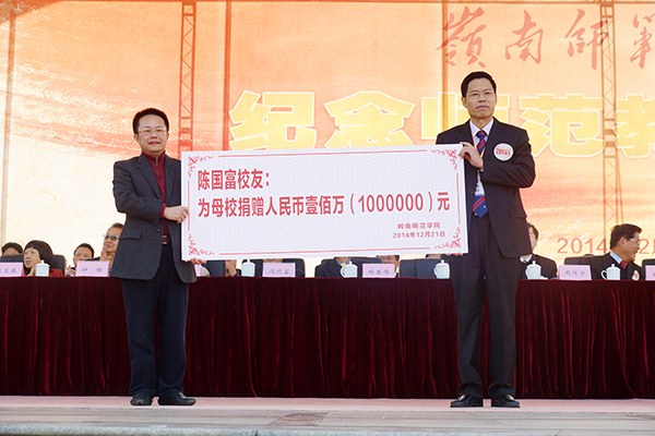 陈国富校友捐款100万元,建设实验室和设立奖助学金。