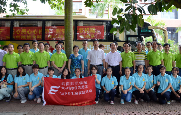 出征仪式中,学校党委梁英书记宣布2014年岭南师范学院大学生暑期“三下乡”社会实践团队正式出征。雷阳广场中队旗迎风飘飘,展示实践队伍的活力;岭师校园里醒狮欢腾起舞,营造激情氛围。