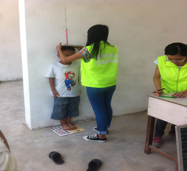7月9号,为了了解高丰小学生的身体情况,法政院13公管1社会实践队为他们进行了一次爱心体检,这也是该队的特色活动之一。受有限的农村资源影响,只能对他们的身高和视力这两个基本的项目进行测验。这次体检由该队的活动组策划,借用皮尺,在墙上弄个身高表和视力表。用具虽然简陋,却承载着我们队学生的关爱。