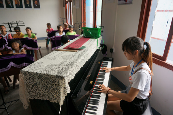 作为艺术文化传播志愿者的队员们,他们热心地给当地隆昌中心学校的小学生传授艺术技能。队员们凭借深厚的艺术素养、多种多样的教学方法、亲切可人的语言激发了孩子们对绘画、书法、舞蹈、音乐的热爱,为山村孩子的艺术之梦插上了彩色的翅膀。队员们对艺术的高涨热情和对学生耐心的教导,受到了当地村民的认可和赞许。