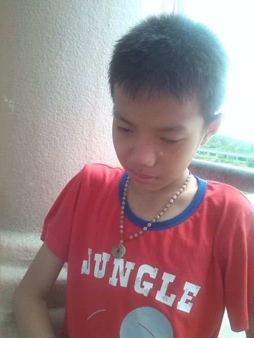 在角落里哭泣的小男孩