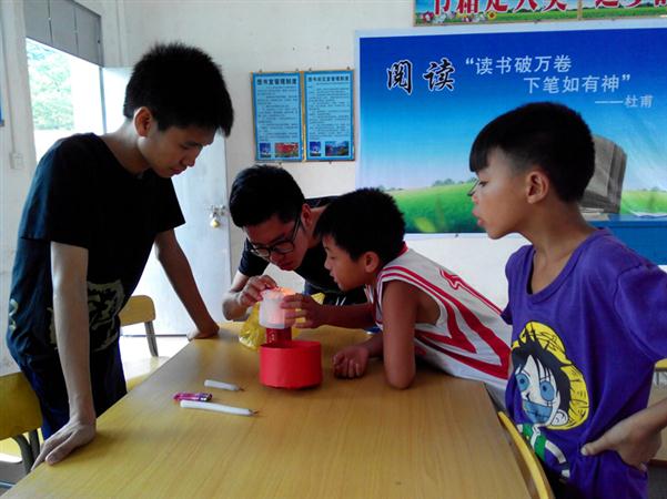 为了点燃学生的科技创新,激发学生们的发散性思维,丰富和活跃校园文化生活,提高学生的综合素养和审美情趣。7月8日上午,“情系粤西 梦启科本”实践队全体成员以及惠通希望小学全体师生在学校操场上开展了以“走进科学,走进梦想”为主题的科技展活动。