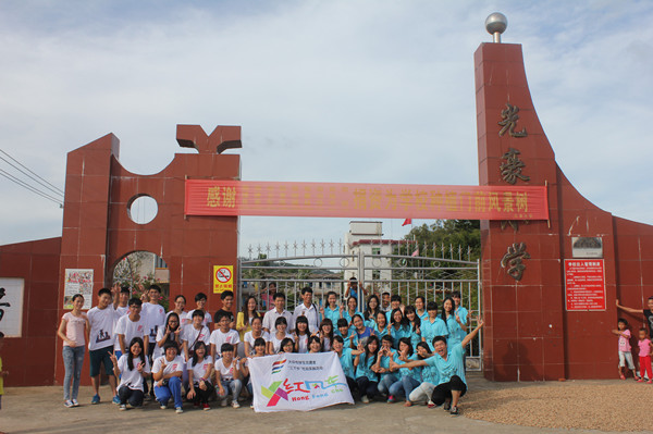 书记和辅导员与队员合拍后,副书记问起调研组组长欧春泽关于“红风车”这个队名的寓意,欧春泽答道:“红色代表吉祥如意,风车代表童真,红风车代表我们和小孩子和谐相处。再深层的含义,则是红色寓意党的光芒,风车寓意传播,将党的光芒传播到基层。结合党建这边有个活动,打算和这次三下乡做一个连接。”由于欧春泽是学生党建工作办公室干部,考虑的事情比较周全。书记听后大赞寓意深远。在校门拍完合照后,与队员走回校内,问起接下来的活动,孔嘉良介绍接下来安排的运动会和文艺汇演,以及亲子活动等,书记和辅导员都较为期待,并激励我们顺利进行。