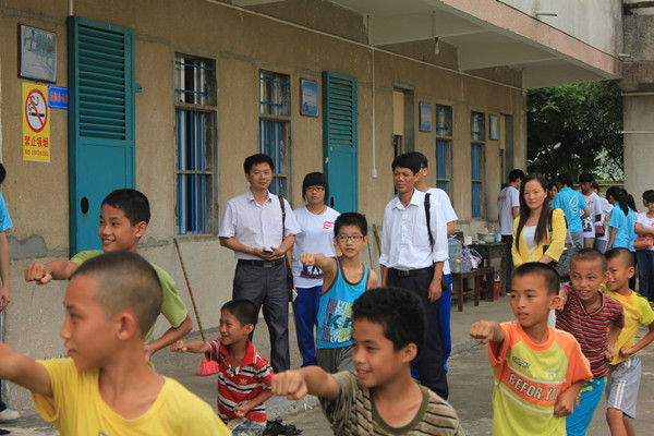 到了17点30分,光豪小学校长欧王冲外出办事回来,与两位书记亲切握手,并进行交谈。书记就这次三下乡活动,感谢校长欧王冲给予这次机会让红风车实践队到校内组织活动。校长也为两位书记和辅导员路途遥远过来表示欢迎。由于其儿子欧春泽在商学院有不错的成绩,书记当着校长的面不吝赞赏,并笑着邀请校长欧王冲到岭南师范学院参观。校长笑道早已去过几次了。