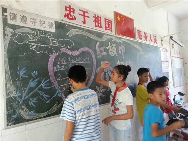 在 “dream high”社会实践队的支教活动中,为了响应团中央的号召,7月13日,实践队在石颈中心小学的各班的课室,开展了一场名为“红领巾相约中国梦”的主题队的活动,队员们希望通过此次活动让学生向优秀少先队队员看齐,从点点滴滴做起。