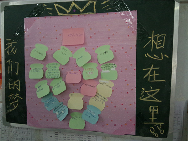面对着贴满“我想当一名老师。”“我想当一名司机”,“想当一名医生”……的梦想板,陈老师说:“拥有梦想的人值得尊敬自己也让人羡慕。那我们怎样才能做到让人尊敬、羡慕和实现我们的梦想呢?”教室里一阵沉默后,有一位同学慢慢站起来轻声说:“需要不懈努力和坚持。”陈老师微笑着点点头称赞了她后,然后指出了一个人,要实现自己的梦想,最重要的是具备以下两个条件:勇气和行动。只有拥有足够的勇气和行动去捍卫我们的梦想并坚持不懈,我们才有可能实现心中的梦想。同学们是懂非懂地点了点头。