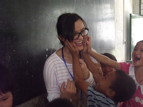 每天闲暇之时,我会借机到每个班去溜达溜达,虽然有三个班,但最让我牵挂的还是一二年级的那帮小屁孩,每次到他们门口,当他们目光迎向我时,他们会露出小虎牙,总会听到有人会喊“海绵宝宝”,或是小声交头接耳地说着“海绵宝宝来了”,那一刻我有一些小庆幸,我有着和其他队友所没有的待遇,上学放学时,都会有人和“海绵宝宝”打招呼,say goodbye.为了更能和他们靠近,没有课的我总是会利用机会其他队员那里蹭课来教他们。