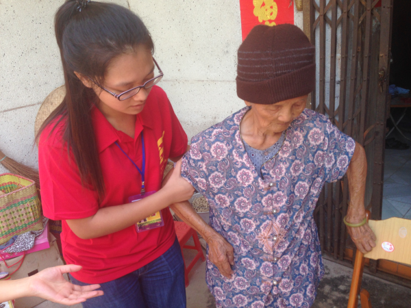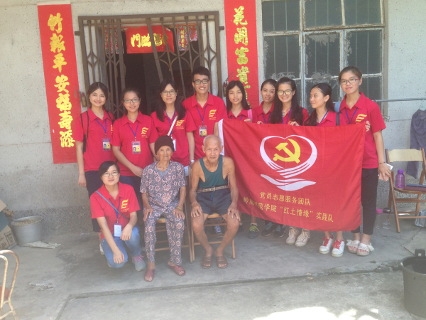首先,共建组组员梁巧吾代表红土情缘实践队向他们送上一点物品,如猪肉、冬瓜、大米、面条等等。接着,我们分工合作,帮他们收拾好客厅的杂物,摆放好客厅的凳子,打扫干净厨房,洗干净餐具,并把庭院里的柴全部搬到厨房里。他们对我们的工作十分满意,竖起大拇指连声称道我们是好学生。