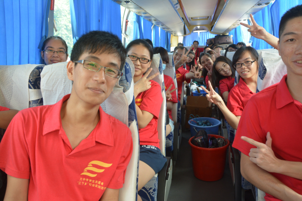 忘不了我们在来实践基地路上的欢笑。我们来自不同的学院、专业,许多队员以前没有见过面。但是,我们敞开心扉,主动地与其他队员聊天,如谈论在学校的情况、所学专业的就业前景、对未来的职业规划、对“三下乡”的兴奋与期待之情等等。我们还与身边的队员交换干粮,一起合影,讨论“三下乡”的准备工作……很快我们彼此之间的距离拉近了,陌生感消失了。车厢里洋溢着笑容!
