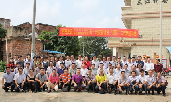 9月24日,校党委书记梁英、副书记黄钢,率领学校扶贫开发帮扶团61人,赴吴川市振文镇三江村,与109户贫困户进行对接。吴川代市长全可文,市委常委、组织部部长黄真窦,市委常委、市委办主任吴松江,副市长李志鹏,市扶贫办主任林伟;振文镇委书记张国强、副镇长邱观寿,村委会干部等陪同开展活动。
