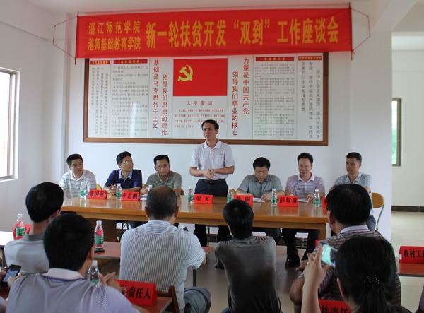 活动在黄钢副书记主持的座谈会中拉开序幕。吴川市、振文镇、三江村领导,纷纷感谢湛师党委和党员干部前来三江村开展帮扶贫困户活动。吴松江常委说,湛师领导、干部积极开展扶贫开发活动,吴川人民深受感动;我们要积极配合湛师做好帮扶工作。振文镇委张国强书记表示,三江村民应迅速行动起来,努力改变落后面貌,以实际行动感谢湛师人的帮助。