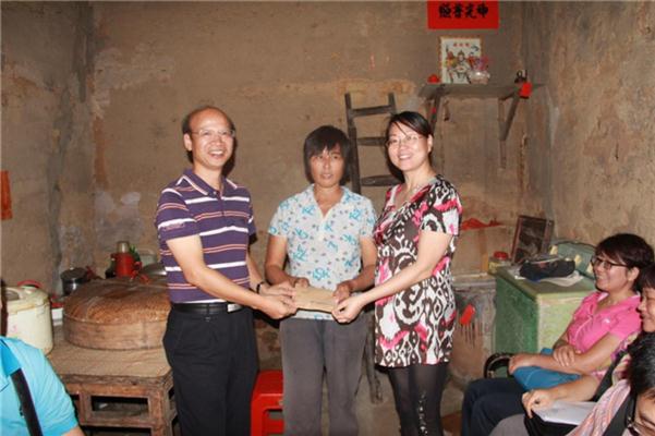 经过近1个半小时的颠簸路程,一行人来到吴川市振文镇三江村,先后看望了林亚轩、林康德、林景新、林康荣、林英、林日寿等六个家庭,其中林亚轩、林康德为特困户。首先图书馆参加帮扶活动的全体人员一起到了特困户林亚轩的家,吴进书记和陈俊群馆长等馆领导与贫困户进行了亲切的交谈。然后,馆领导分头与各党支部书记前往其他五个帮扶对象的家中了解他们的生活状况和困难,送上慰问品和慰问金,指导他们生产致富,给他们送去了全体馆员的爱心和关怀。