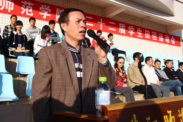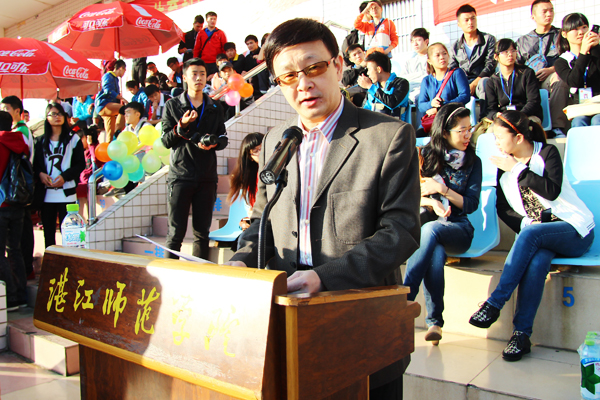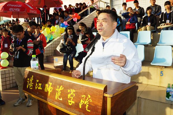 刘海涛副书记代表学校致开幕词。他说,一年一度的校运会,是全体湛师人的隆重集会。长期以来,学校坚持把增强师生员工体质作为体育运动的根本目标,全面实施《国家学生体质健康标准》和《全民健身纲要》,大力加强体育设施建设,建立健全体育工作机制,发展校园体育文化,倡导热爱体育、崇尚运动、健康向上的良好风尚,体育教学、科研和竞技水平不断提高。