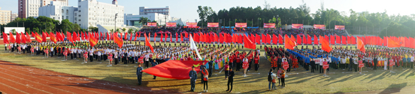 本届运动会将为期两天,规模盛大。衷心预祝体育健儿们赛出好成绩,并用他们的飒爽英姿和青春活力诠释湛师人的勃勃生机和阳刚有为、追求卓越的豪情,展示学校良好的精神风貌和体育风采。