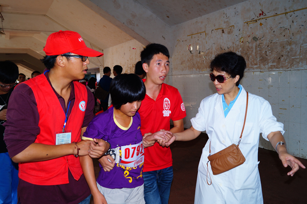 医疗人员:“建议就是,热身很重要。特别是今天下午的长跑,运动员一定要做好热身运动。“到达终点时,通常很多人会立即围上去,这样不好,不能抱运动员,先让他们再活动活动。”